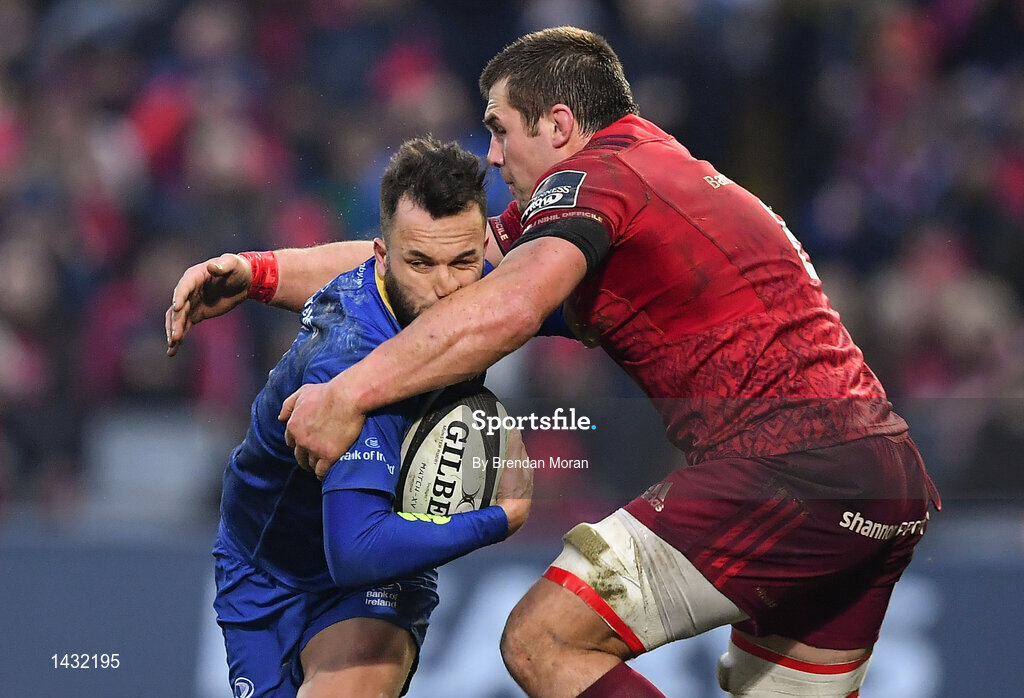 26 December 2017; Jamison Gibson-Park of Leinster is tackled by CJ Stander of Munster during the Guinness PRO14 Round 11 match between Munster and Leinster at Thomond Park in Limerick. Photo by Brendan Moran/Sportsfile