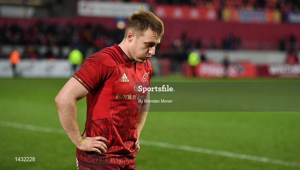 26 December 2017; Rory Scannell of Munster leaves the pitch after the Guinness PRO14 Round 11 match between Munster and Leinster at Thomond Park in Limerick. Photo by Brendan Moran/Sportsfile