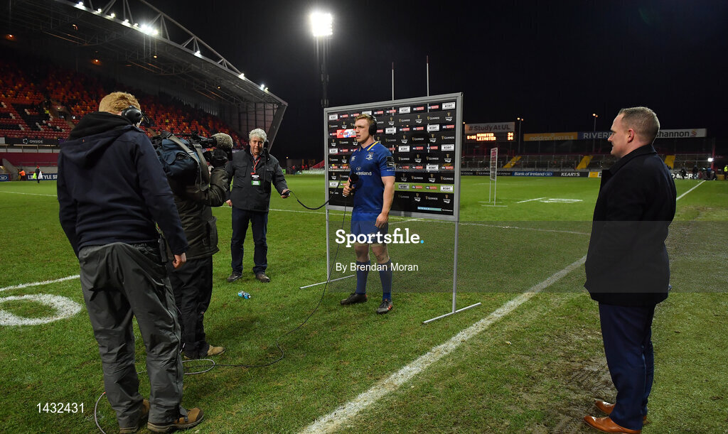 26 December 2017; Dan Leavy of Leinster is interviewed by Sky Sports after the Guinness PRO14 Round 11 match between Munster and Leinster at Thomond Park in Limerick. Photo by Brendan Moran/Sportsfile