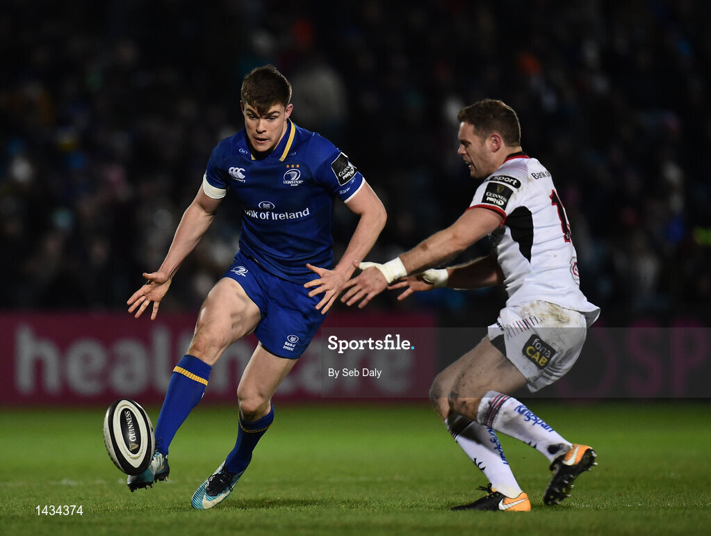 6 January 2018; Garry Ringrose of Leinster in action against Darren Cave of Ulster during the Guinness PRO14 Round 13 match between Leinster and Ulster at the RDS Arena in Dublin. Photo by Seb Daly/Sportsfile