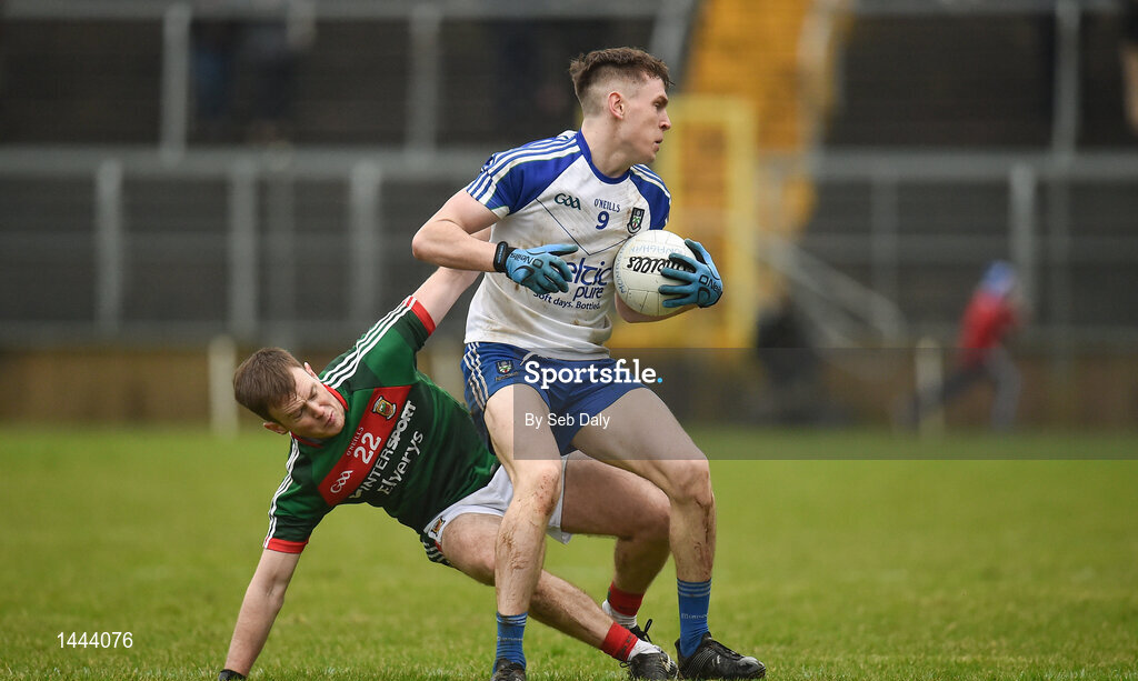 28 January 2018; Niall Kearns of Monaghan in action against Shane Nally of Mayo during the Allianz Football League Division 1 Round 1 match between Monaghan and Mayo at St Tiernach's Park in Clones, County Monaghan. Photo by Seb Daly/Sportsfile