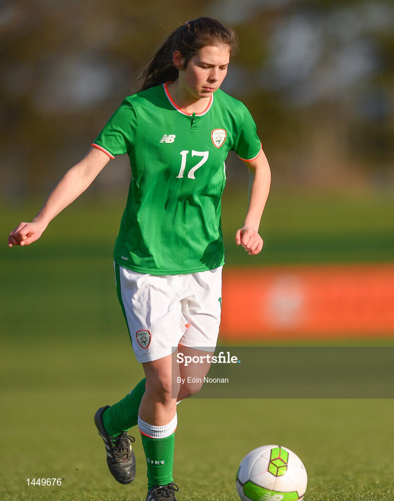 5 February 2018; Aoife Slattery of Republic of Ireland during the Women's Under 17 International Friendly match between Republic of Ireland and Denmark at the FAI National Training Centre in Abbotstown, Dublin. Photo by Eóin Noonan/Sportsfile