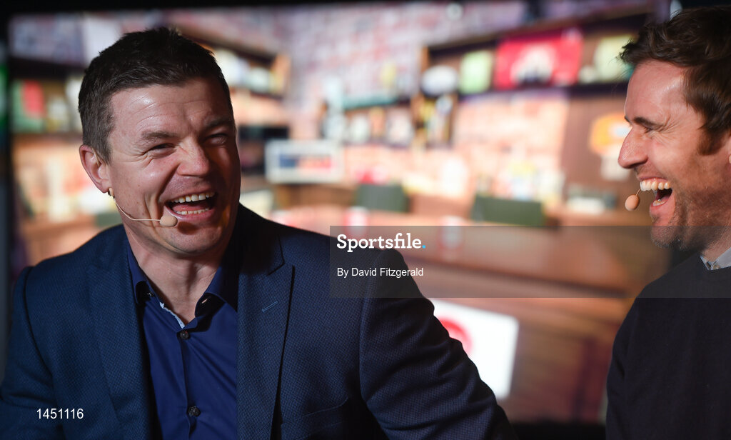 8 February 2018: Former Ireland and Leinster rugby player Brian O'Driscoll, left, and former Ireland soccer player Kevin Kilbane in attendance at the Off The Ball Launch at the Drury Buildings in Dublin. Photo by David Fitzgerald/Sportsfile