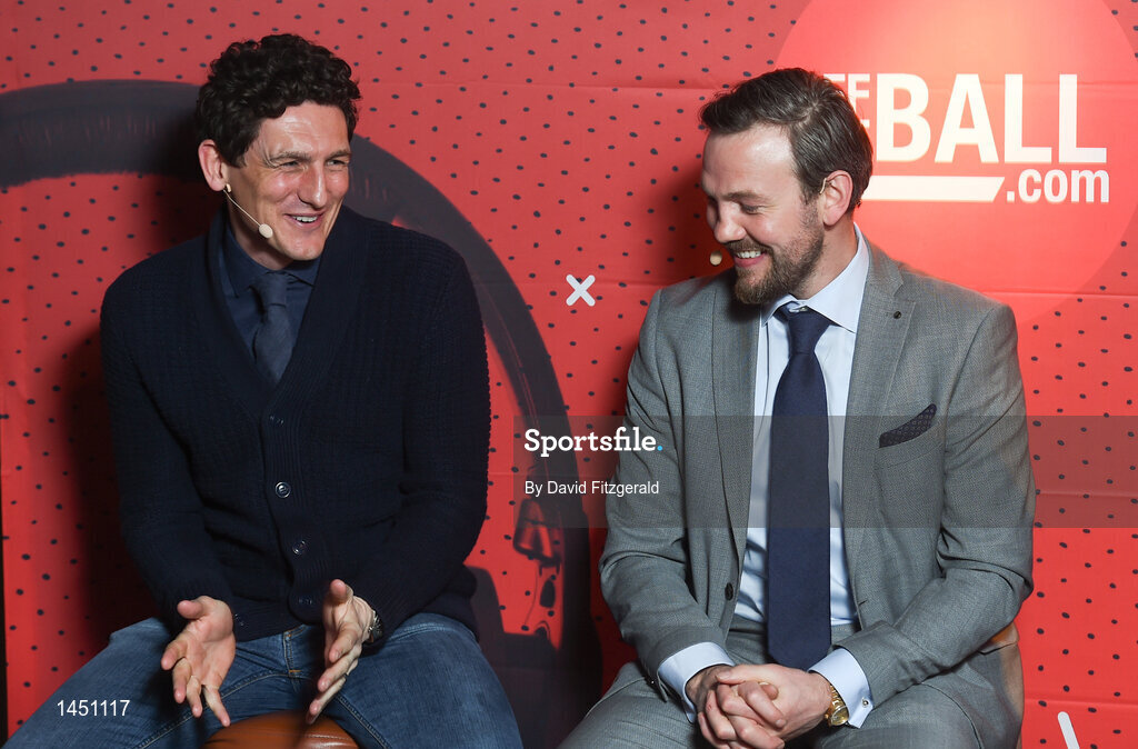 8 February 2018: Former Ireland soccer player Keith Andrews, left, and boxer Andy Lee in attendance at the Off The Ball Launch at the Drury Buildings in Dublin. Photo by David Fitzgerald/Sportsfile
