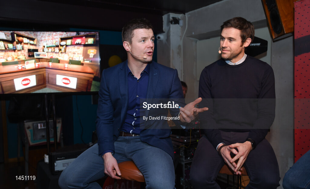 8 February 2018: Former Ireland and Leinster rugby player Brian O'Driscoll, left, and former Ireland soccer player Kevin Kilbane in attendance at the Off The Ball Launch at the Drury Buildings in Dublin. Photo by David Fitzgerald/Sportsfile