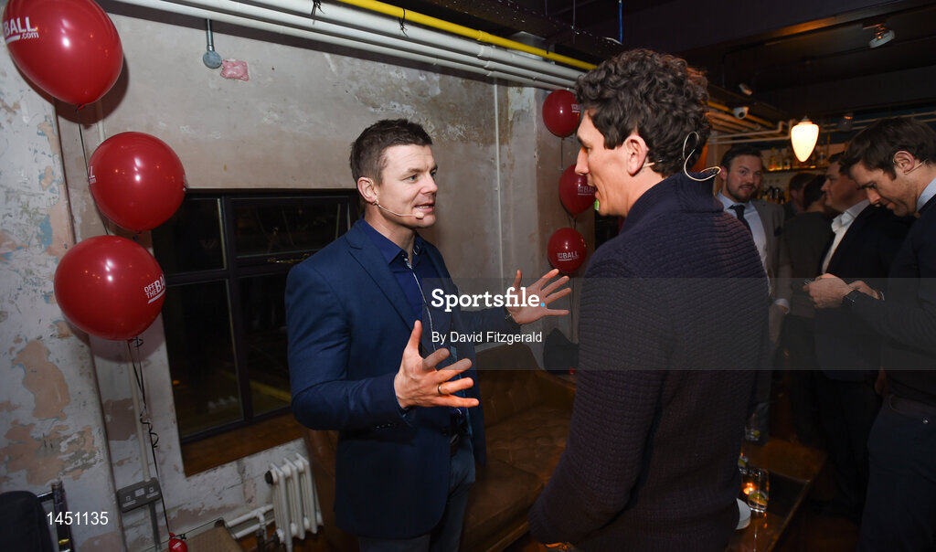 8 February 2018: Former Leinster and Ireland rugby player Brian O'Driscoll and former Ireland soccer player Keith Andrews in attendance at the Off The Ball Launch at the Drury Buildings in Dublin. Photo by David Fitzgerald/Sportsfile