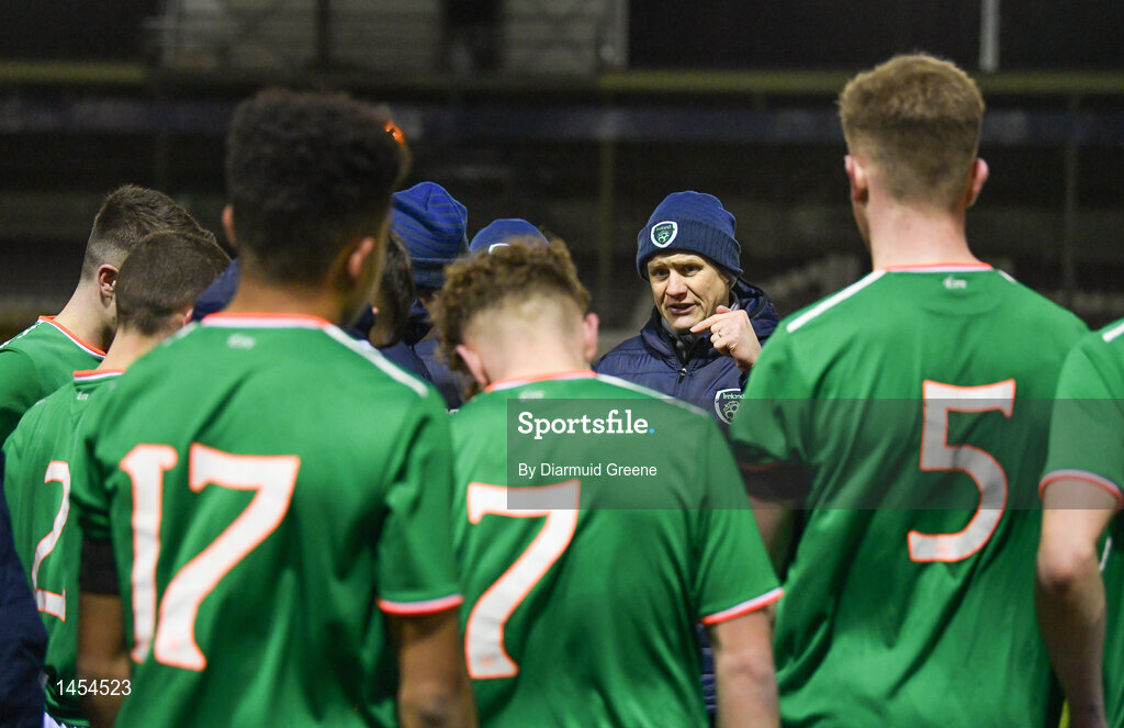 13 February 2018; Republic of Ireland manager Colin O'Brien speaks to his players after the Under 17 International Friendly match between the Republic of Ireland and Turkey at Eamonn Deacy Park in Galway. Photo by Diarmuid Greene/Sportsfile