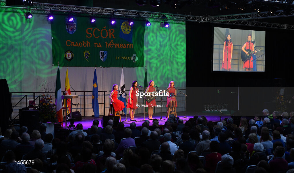 17 February 2018; Brianna McCaffrey, Anna Tully, Derbhile McCaffrey and Niamh McCaffrey from Cornafean, Cavan, competing in the Ballad Groups category during the All-Ireland Scór na nÓg Final 2018 at the Knocknarea Arena in Sligo IT, Sligo. Photo by Eóin Noonan/Sportsfile