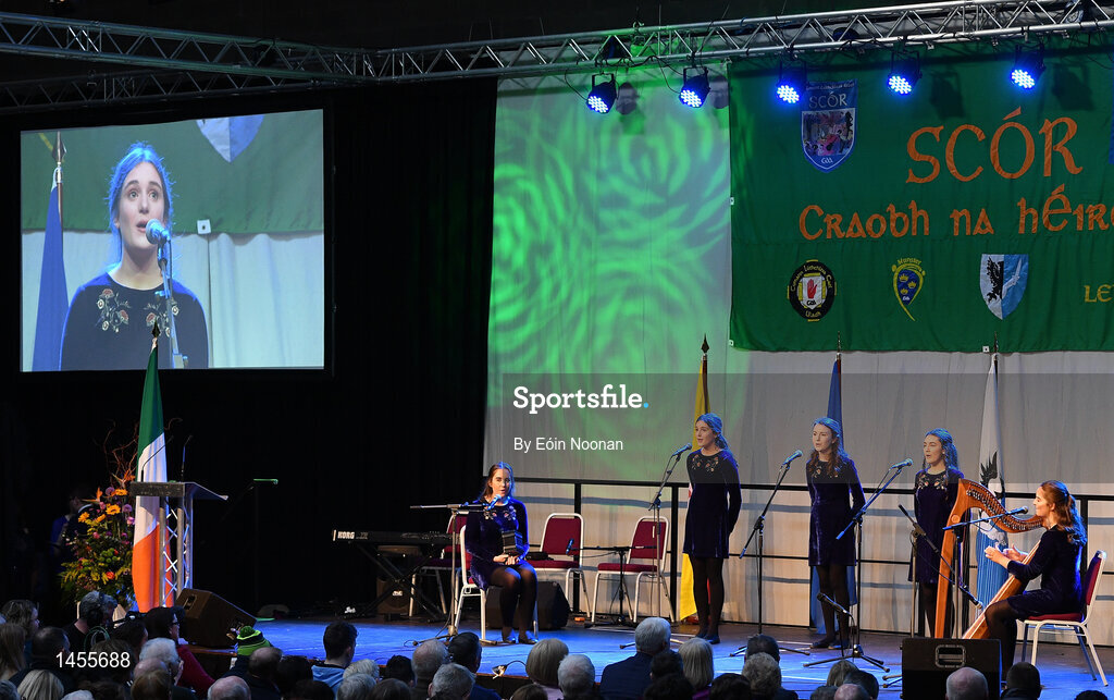 17 February 2018; Ava Brogan, Róisín Noone, Elsie Harman, Eleanor Smith and Ríonach Nic Conmara from St. Mary's Carrick-on-Shannon, Leitrim, competing in the Ballad Groups category during the All-Ireland Scór na nÓg Final 2018 at the Knocknarea Arena in Sligo IT, Sligo. Photo by Eóin Noonan/Sportsfile