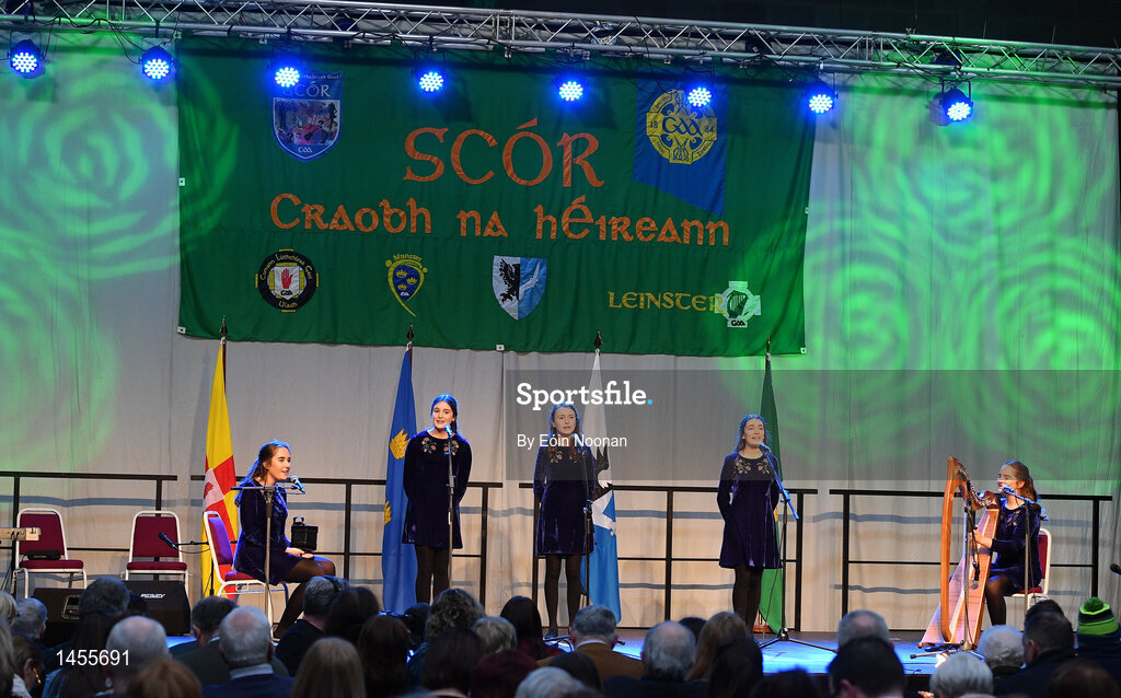 17 February 2018; Ava Brogan, Róisín Noone, Elsie Harman, Eleanor Smith and Ríonach Nic Conmara from St. Mary's Carrick-on-Shannon, Leitrim, competing in the Ballad Groups category during the All-Ireland Scór na nÓg Final 2018 at the Knocknarea Arena in Sligo IT, Sligo. Photo by Eóin Noonan/Sportsfile