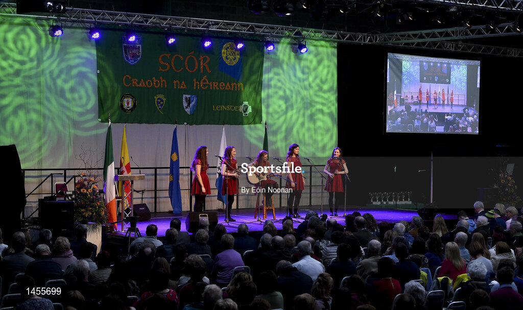 17 February 2018; Orlagh O’Gorman, Rachel Hodnett, Cáit Ní Chríodáin, Aoife Nic Shuibhne and Joan O’Donovan from Carbery Rangers, Cork, competing in the Ballad Groups category during the All-Ireland Scór na nÓg Final 2018 at the Knocknarea Arena in Sligo IT, Sligo. Photo by Eóin Noonan/Sportsfile