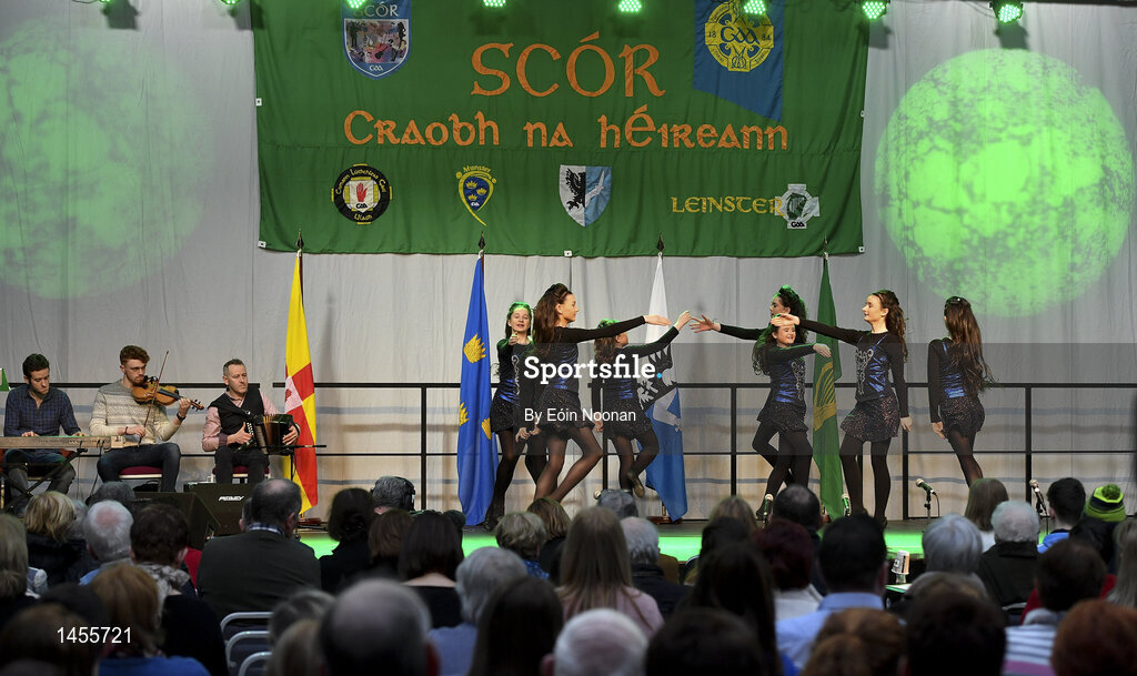 17 February 2018; Emma Morgan, Áine Morgan, Nicole Glancy, Grace Duignan, Rhianna Ward, Kaneisha Beirne, Sienna Beirne and Amelia Zawadzka from Carrick-on-Shannon, Leitrim, competing in the Rince Foirne category during the All-Ireland Scór na nÓg Final 2018 at the Knocknarea Arena in Sligo IT, Sligo. Photo by Eóin Noonan/Sportsfile