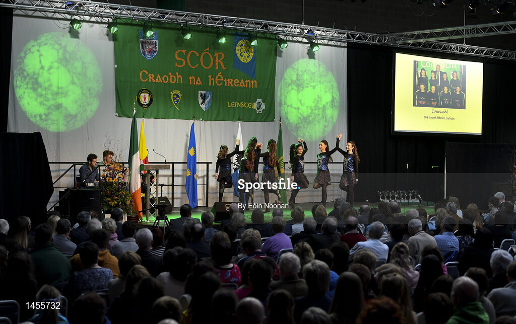 17 February 2018; Emma Morgan, Áine Morgan, Nicole Glancy, Grace Duignan, Rhianna Ward, Kaneisha Beirne, Sienna Beirne and Amelia Zawadzka from Carrick-on-Shannon, Leitrim, competing in the Rince Foirne category during the All-Ireland Scór na nÓg Final 2018 at the Knocknarea Arena in Sligo IT, Sligo. Photo by Eóin Noonan/Sportsfile