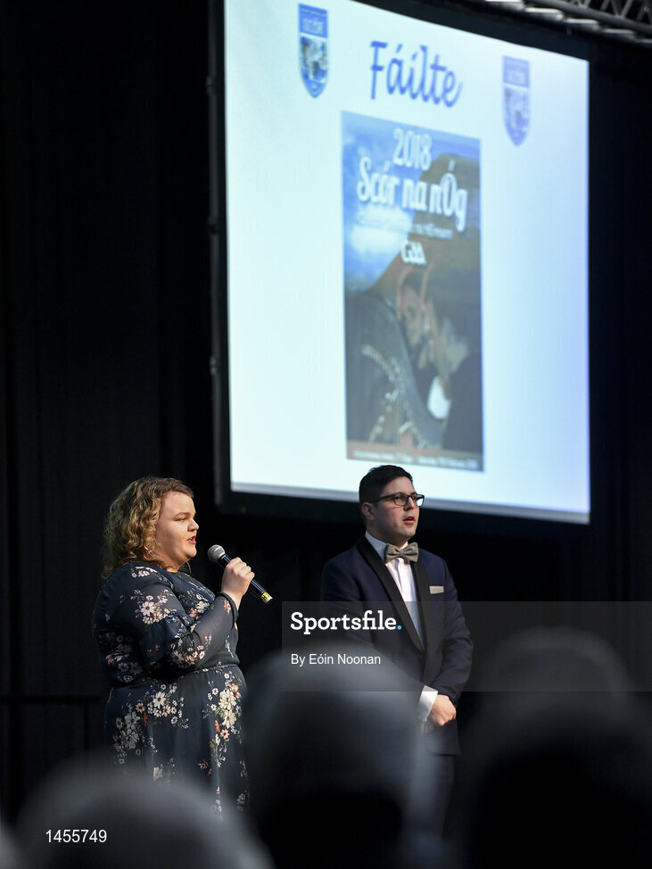 17 February 2018; Róisín Kilgannon from the St. Farnan’s Club in Co. Sligo, singing Amhrán na nhFiann prior to the All-Ireland Scór na nÓg Final 2018 at the Knocknarea Arena in Sligo IT, Sligo. Photo by Eóin Noonan/Sportsfile