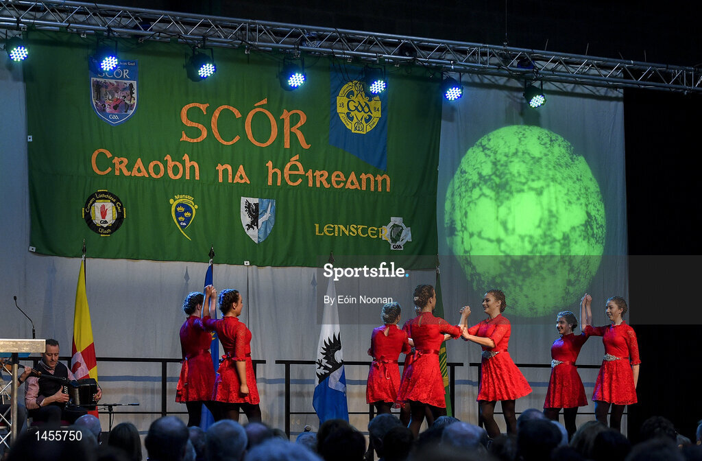 17 February 2018; Sian Cooke, Gráinne Nolan, Eve Murray, Tara Sequian, Grace Hoare, Kathy Dermody, Sarah Cooke and Sorcha Nic Dhabhóc from Birr, Offaly, competing in the Rince Foirne category during the All-Ireland Scór na nÓg Final 2018 at the Knocknarea Arena in Sligo IT, Sligo. Photo by Eóin Noonan/Sportsfile