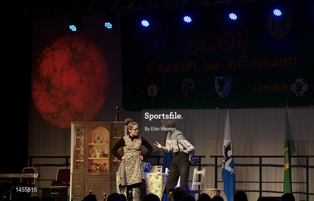 17 February 2018; Barry Sugrue, Emily Crowe, Isabelle Crowe, Joshua Roche, Liam Kingston, Áine O’Sullivan, Aoife O’Sullivan and Dearbhla Quirke from Na Gaeil, Kerry, competing in the Stage Presentation category during the All-Ireland Scór na nÓg Final 2018 at the Knocknarea Arena in Sligo IT, Sligo. Photo by Eóin Noonan/Sportsfile