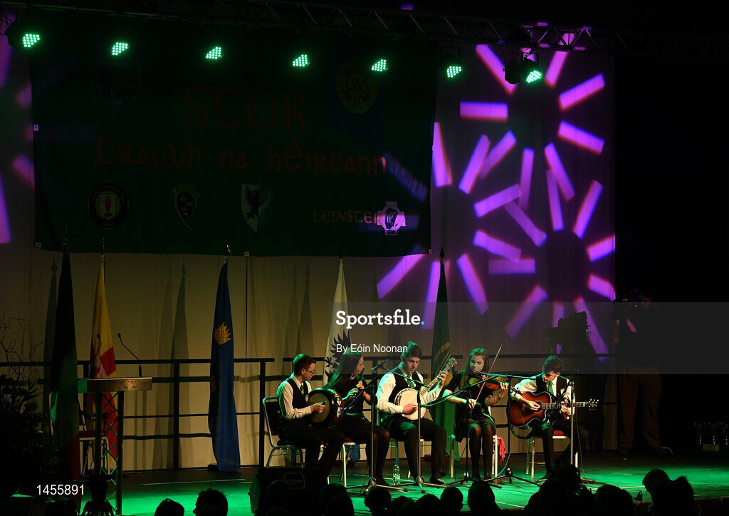 17 February 2018; Seán Bogan, Zara Martin, Katie McGoldrick, Cormac McElhatton and Colin Carney from Pearse's Fintona, Tyrone, competing in the Instrumental Music category during the All-Ireland Scór na nÓg Final 2018 at the Knocknarea Arena in Sligo IT, Sligo. Photo by Eóin Noonan/Sportsfile
