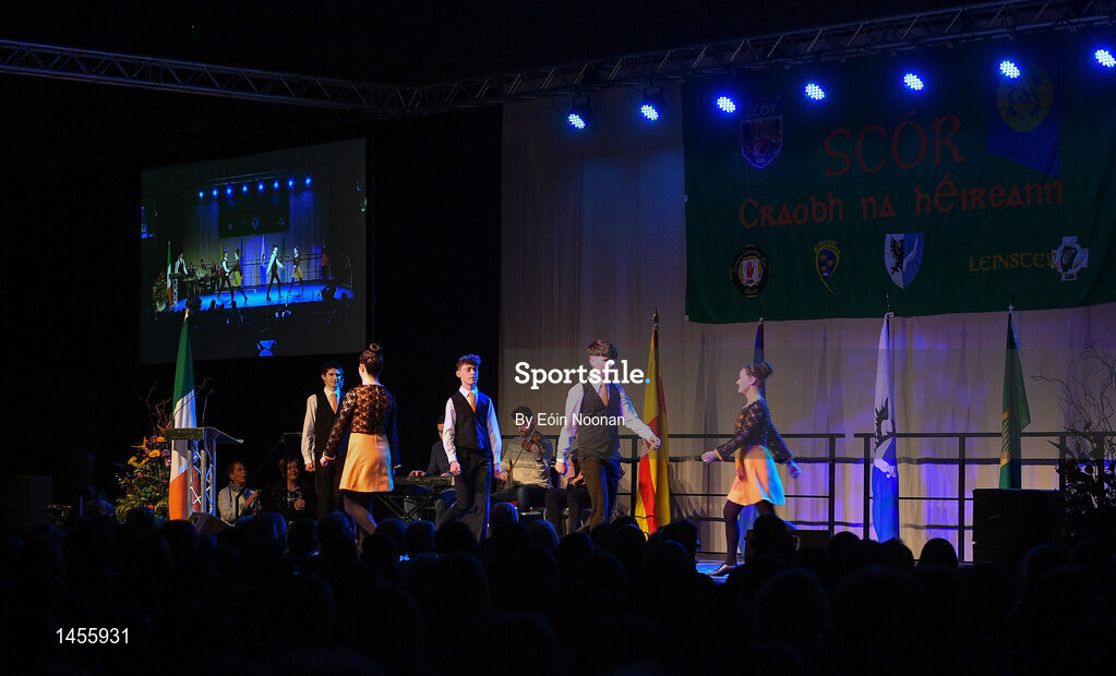 17 February 2018; Anna Fallon, Dónal Doherty, Andrew Shaw, Emma Thompson, Caoimhe Monaghan , Cathal Dagg, Eoghan Murray and Neasa Mangan-Lynch from The Downs, Westmeath, competing in the Set Dancing category during the All-Ireland Scór na nÓg Final 2018 at the Knocknarea Arena in Sligo IT, Sligo. Photo by Eóin Noonan/Sportsfile