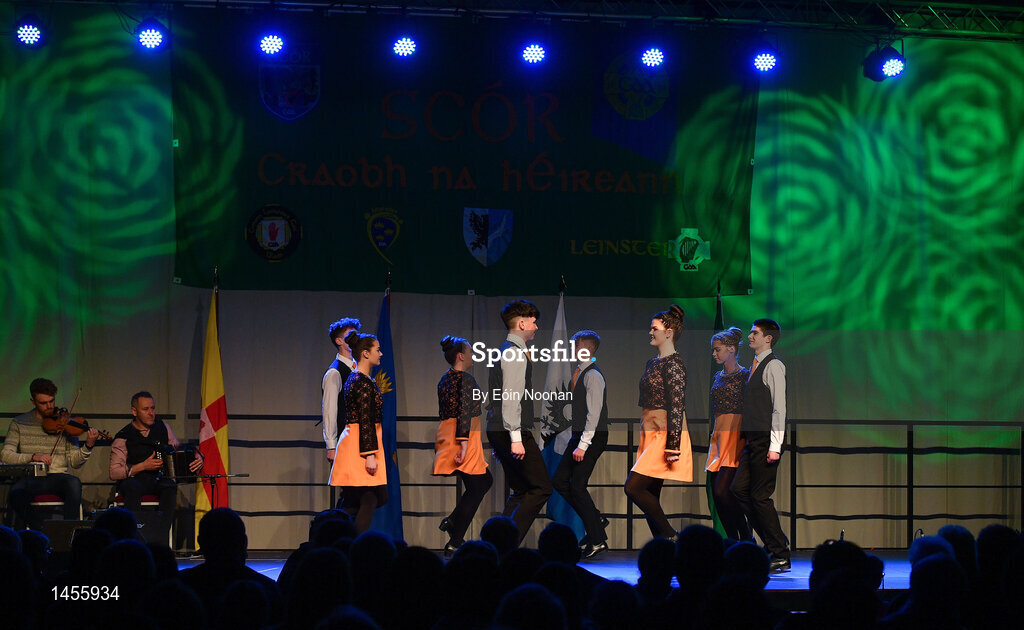 17 February 2018; Anna Fallon, Dónal Doherty, Andrew Shaw, Emma Thompson, Caoimhe Monaghan , Cathal Dagg, Eoghan Murray and Neasa Mangan-Lynch from The Downs, Westmeath, competing in the Set Dancing category during the All-Ireland Scór na nÓg Final 2018 at the Knocknarea Arena in Sligo IT, Sligo. Photo by Eóin Noonan/Sportsfile