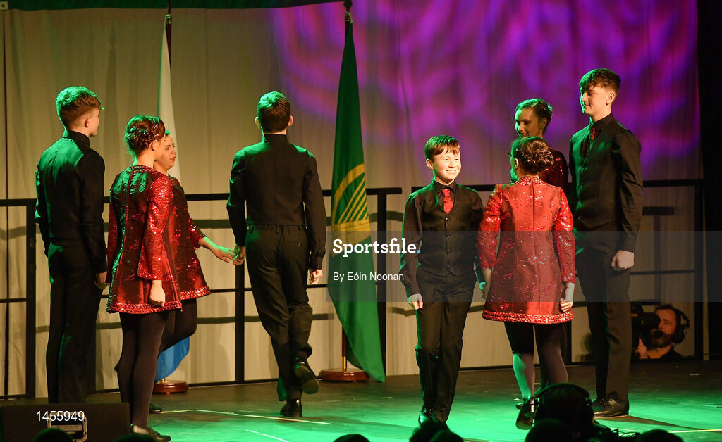 17 February 2018; Aaron Quinn, Emily Greaney, Nathan Conway, Lauren Kelly, Laura Duggan, Emma Harte-Geasley, Glen Forde and Evan Loughnane from Abbeyknockmoy, Galway, competing in the Set Dancing category during the All-Ireland Scór na nÓg Final 2018 at the Knocknarea Arena in Sligo IT, Sligo. Photo by Eóin Noonan/Sportsfile