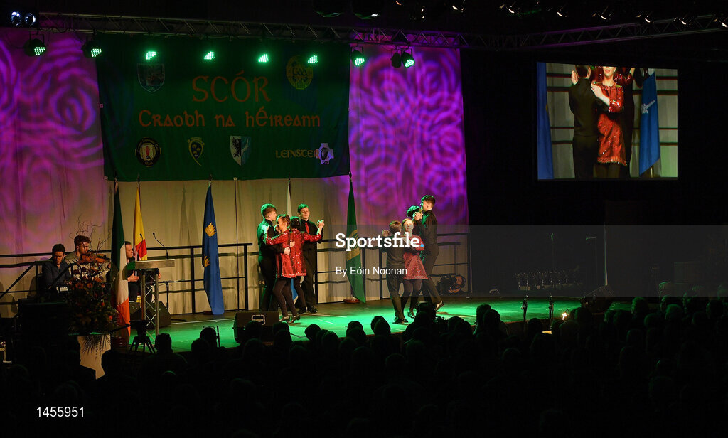 17 February 2018; Aaron Quinn, Emily Greaney, Nathan Conway, Lauren Kelly, Laura Duggan, Emma Harte-Geasley, Glen Forde and Evan Loughnane from Abbeyknockmoy, Galway, competing in the Set Dancing category during the All-Ireland Scór na nÓg Final 2018 at the Knocknarea Arena in Sligo IT, Sligo. Photo by Eóin Noonan/Sportsfile