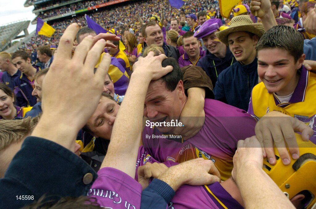 4 July 2004; Wexford's Adrian Fenlon, centre, is mobbed by fans at the final whistle after victory over Offaly. Guinness Leinster Senior Hurling Championship Final, Offaly v Wexford, Croke Park, Dublin. Picture credit; Brendan Moran / SPORTSFILE