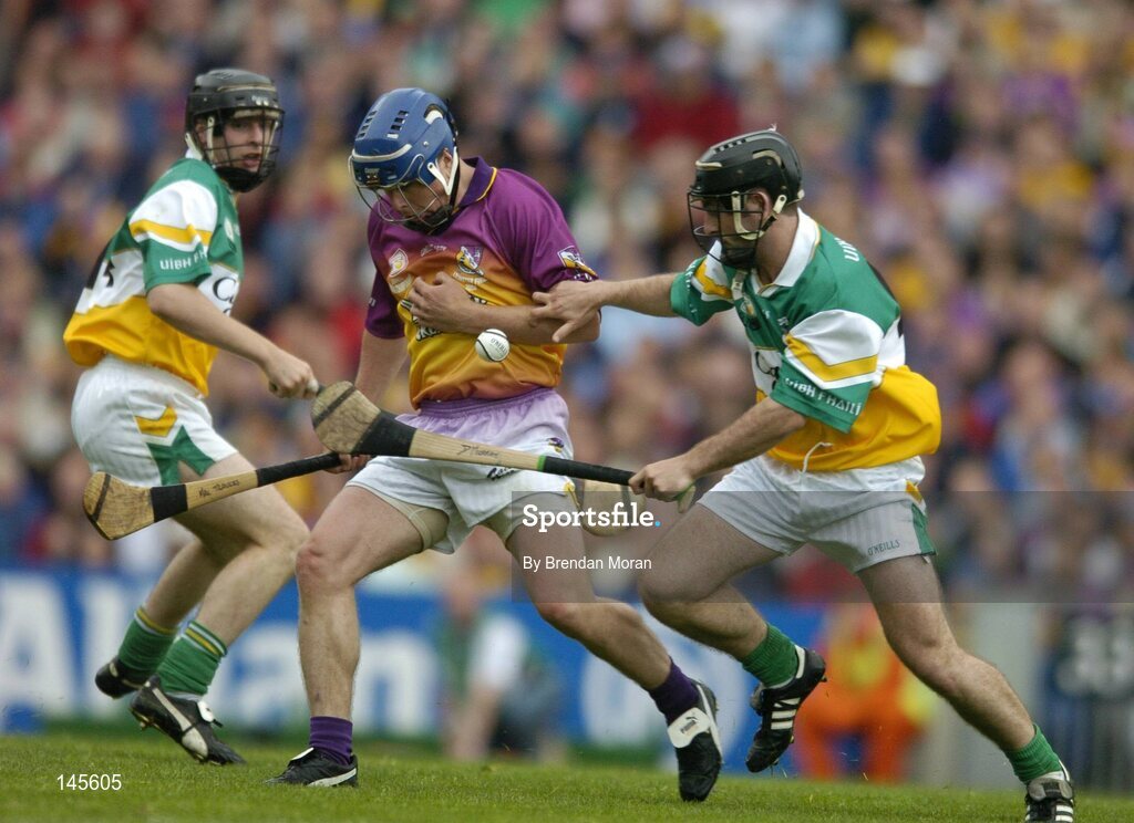 4 July 2004; Malachy Travers, Wexford, in action against Brendan Murphy, left, and Damien Murray, Offaly. Guinness Leinster Senior Hurling Championship Final, Offaly v Wexford, Croke Park, Dublin. Picture credit; Brendan Moran / SPORTSFILE