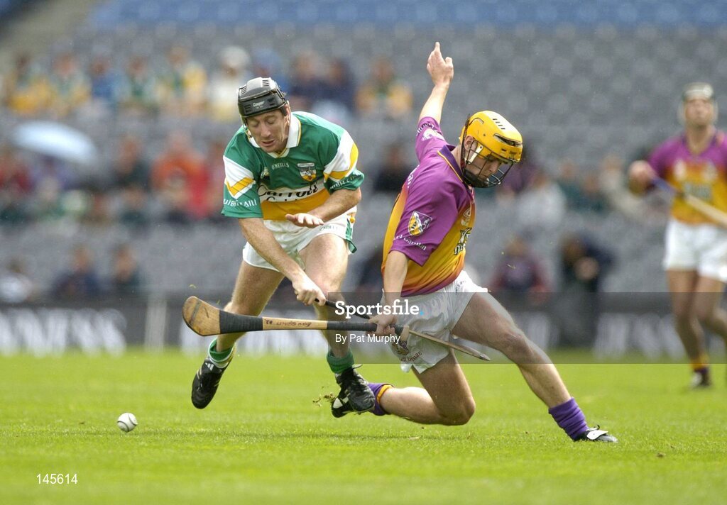 4 July 2004; Eoin Quigley, Wexford, in action against Brian Whelahan, Offaly. Guinness Leinster Senior Hurling Championship Final, Offaly v Wexford, Croke Park, Dublin. Picture credit; Pat Murphy / SPORTSFILE