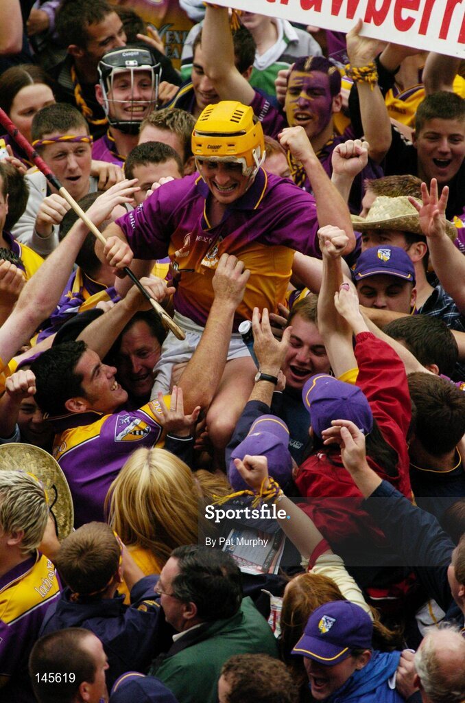 4 July 2004; Rory McCarthy, Wexford, is held aloft after vicrtory over Offaly. Guinness Leinster Senior Hurling Championship Final, Offaly v Wexford, Croke Park, Dublin. Picture credit; Pat Murphy / SPORTSFILE