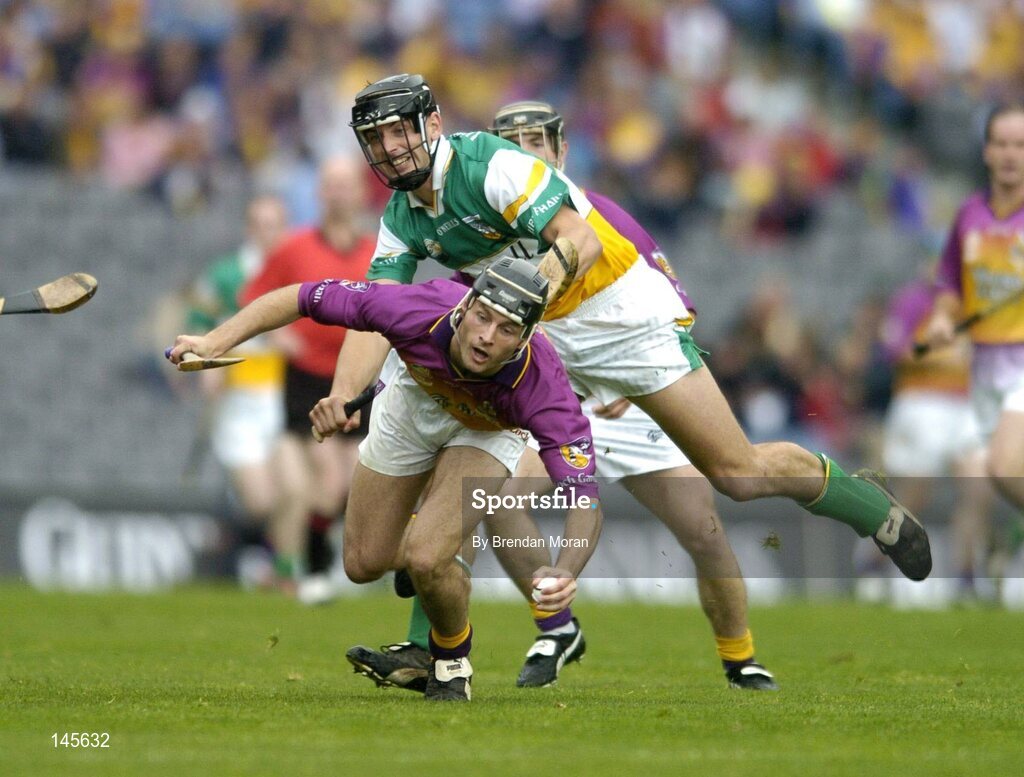 4 July 2004; Rory McCarthy, Wexford, in action against Gary Hanniffy, Offaly. Guinness Leinster Senior Hurling Championship Final, Offaly v Wexford, Croke Park, Dublin. Picture credit; Brendan Moran / SPORTSFILE