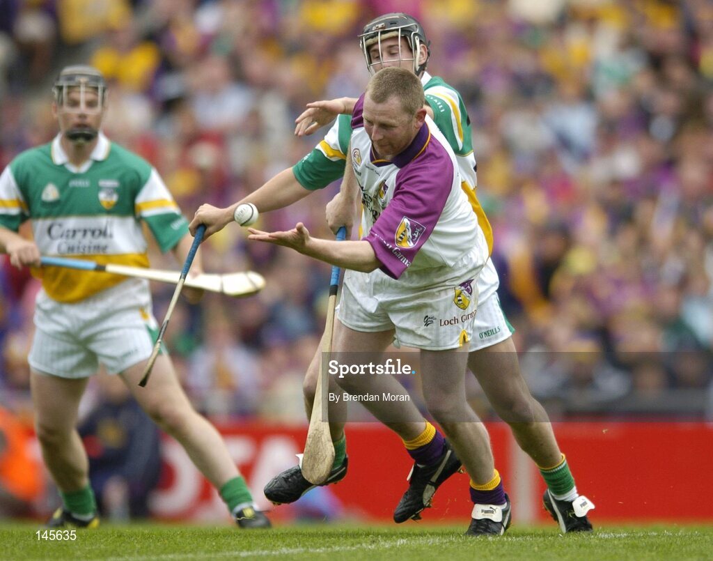 4 July 2004; Damien Fitzhenry, Wexford, in action against Dylan Hayden, Offaly. Guinness Leinster Senior Hurling Championship Final, Offaly v Wexford, Croke Park, Dublin. Picture credit; Brendan Moran / SPORTSFILE