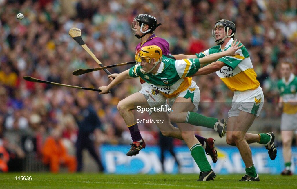 4 July 2004; Tomas Mahon, Wexford, in action against Niall Claffey, left, and Rory Hanniffy, Offaly. Guinness Leinster Senior Hurling Championship Final, Offaly v Wexford, Croke Park, Dublin. Picture credit; Pat Murphy / SPORTSFILE