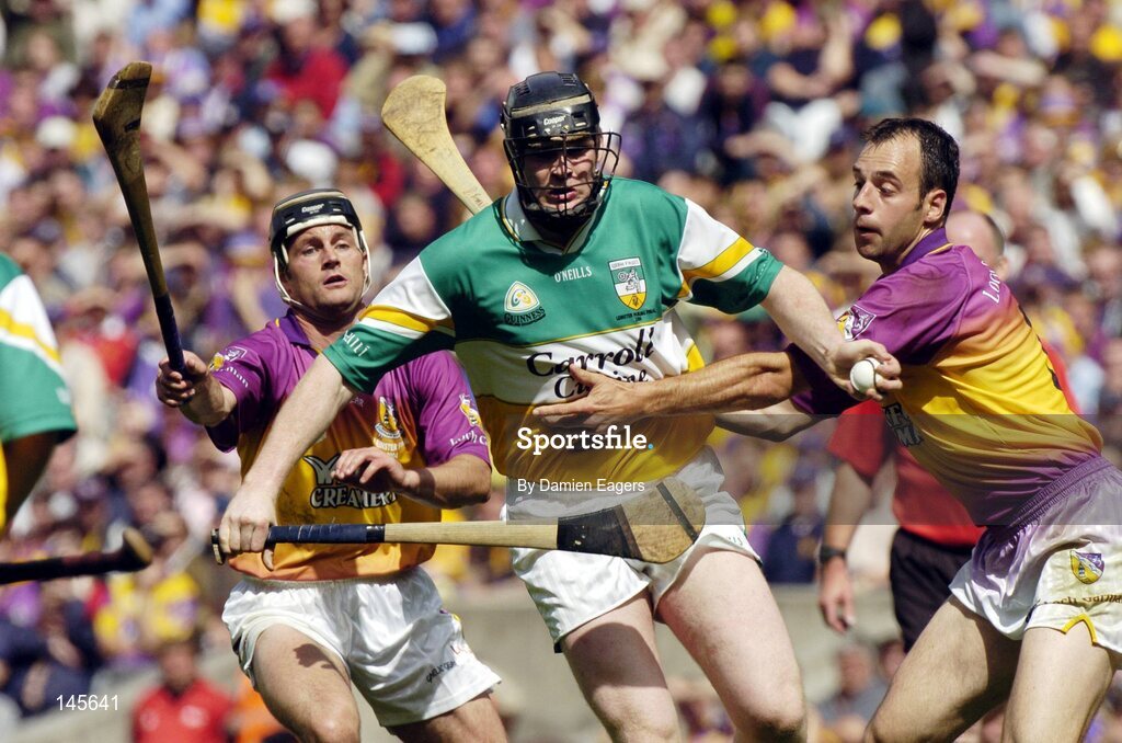 4 July 2004; Joe Brady, Offaly, in action against Wexford's Rory McCarthy, left, and Darragh Ryan. Guinness Leinster Senior Hurling Championship Final, Offaly v Wexford, Croke Park, Dublin. Picture credit; Damien Eagers / SPORTSFILE