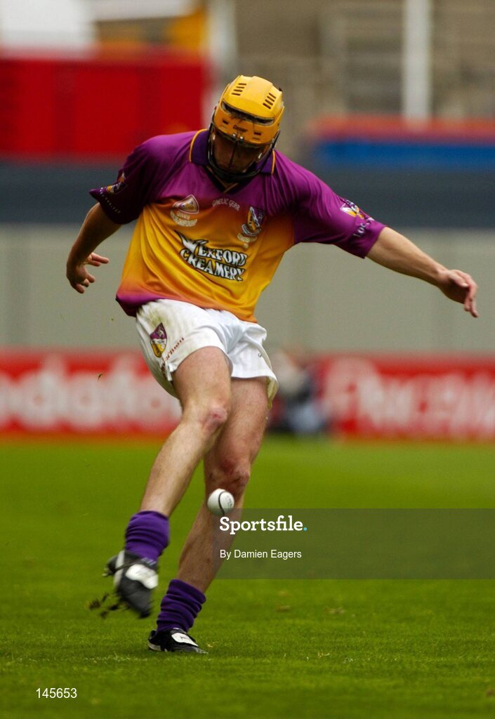 4 July 2004; Wexford's Eoin Quigley kicks the sliothar goalwards. Guinness Leinster Senior Hurling Championship Final, Offaly v Wexford, Croke Park, Dublin. Picture credit; Damien Eagers / SPORTSFILE