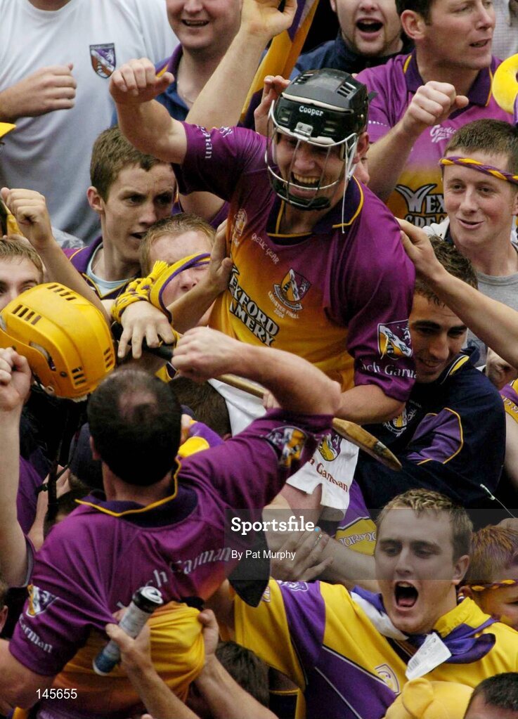 4 July 2004; Wexford's Tomas Mahon, top, and Adrian Fenlon celebrate victory over Offaly. Guinness Leinster Senior Hurling Championship Final, Offaly v Wexford, Croke Park, Dublin. Picture credit; Pat Murphy / SPORTSFILE