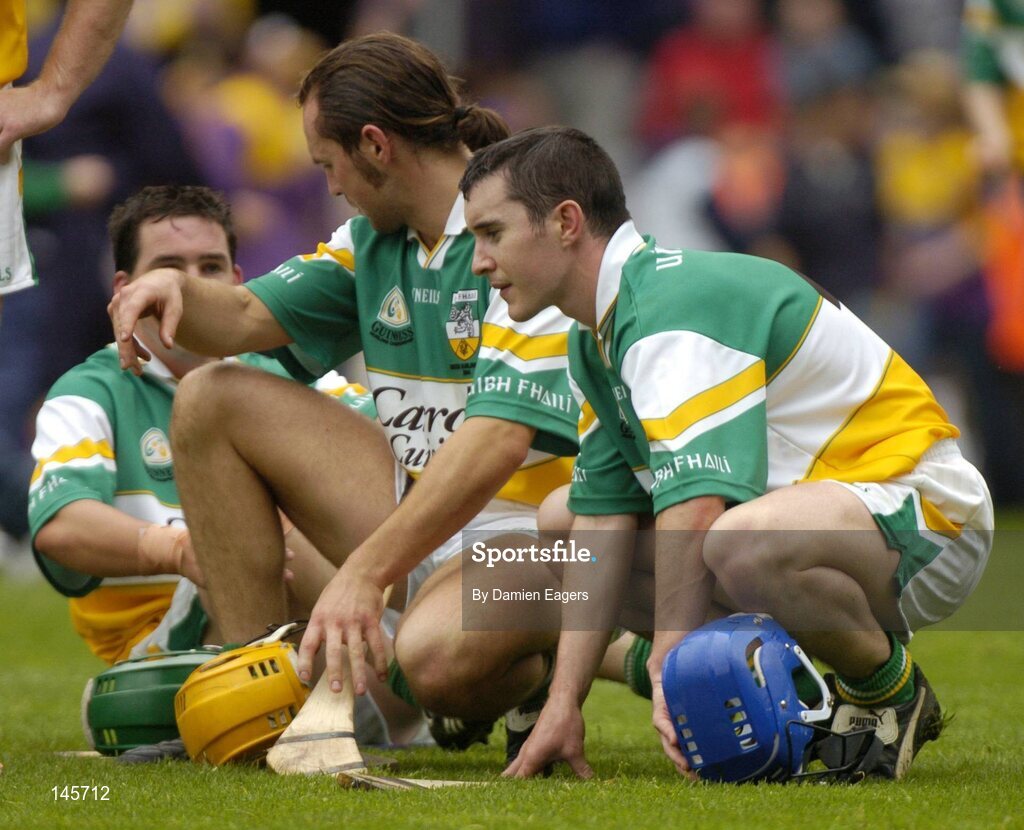 4 July 2004; Offaly players from right to left are David Franks, Ger Oakley and Barry Teehan after defeat to Wexford. Guinness Leinster Senior Hurling Championship Final, Offaly v Wexford, Croke Park, Dublin. Picture credit; Damien Eagers / SPORTSFILE