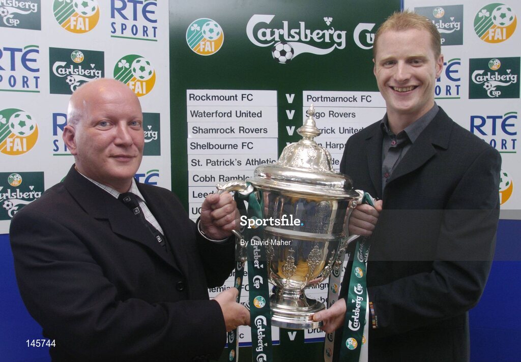 5 July 2004; Paul O'Connell, left, Quay Celtic, with David Shanley, Drumcondra F.C captain, at the draw for the second round of the 2004 Carlsberg FAI Cup at the Gravity Bar. Guinness Hopstore, Dublin. Picture credit; David Maher / SPORTSFILE