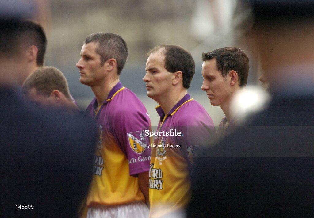 4 July 2004; Wexford players from left to right Declan Ruth, Adrian Fenlon and Tomas Mahon wait to meet the President Mary McAleese. Guinness Leinster Senior Hurling Championship Final, Offaly v Wexford, Croke Park, Dublin. Picture credit; Damien Eagers / SPORTSFILE