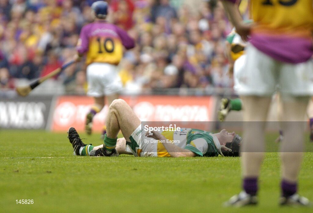 4 July 2004; Offaly's Brian Whelahan goes down with an injury, he later left the field due to this injury. Guinness Leinster Senior Hurling Championship Final, Offaly v Wexford, Croke Park, Dublin. Picture credit; Damien Eagers / SPORTSFILE