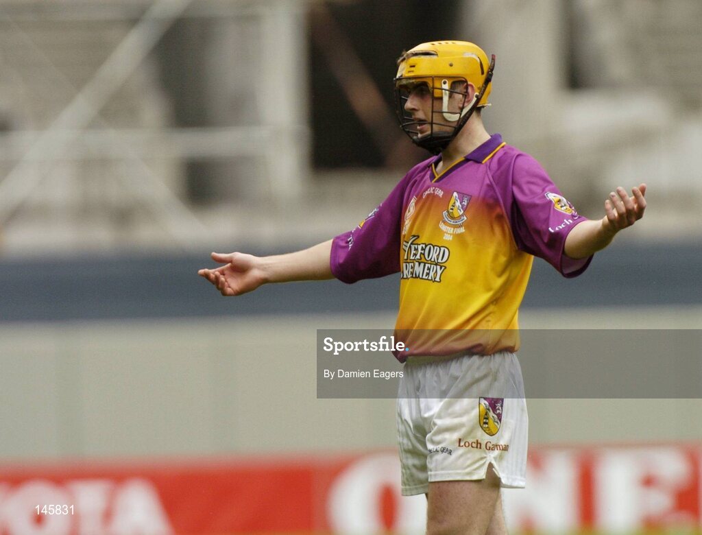 4 July 2004; Wexford's Eoin Quigley signals to the bench for a hurley. Guinness Leinster Senior Hurling Championship Final, Offaly v Wexford, Croke Park, Dublin. Picture credit; Damien Eagers / SPORTSFILE