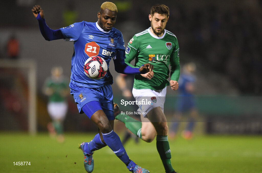 23 February 2018; Ismahil Akinade of Waterford in action against Aaron Barry of Cork City during the SSE Airtricity League Premier Division match between Cork City and Waterford at Turner's Cross in Cork. Photo by Eóin Noonan/Sportsfile