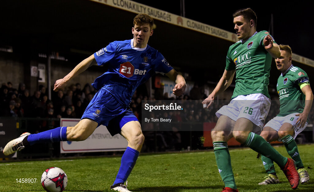 23 February 2018; Rory Feely of Waterford in action against Garry Buckley of Cork City during the SSE Airtricity League Premier Division match between Cork City and Waterford at Turner's Cross in Cork. Photo by Tom Beary/Sportsfile