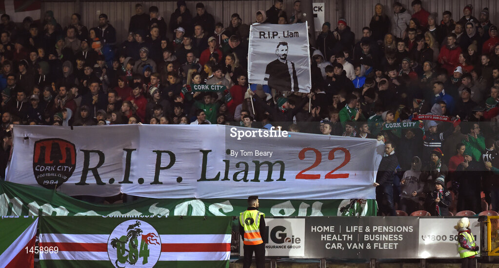 23 February 2018; Cork City supporters during a minutes applause for the late Liam Miller in the twenty second minute during the SSE Airtricity League Premier Division match between Cork City and Waterford at Turner's Cross in Cork. Photo by Tom Beary/Sportsfile