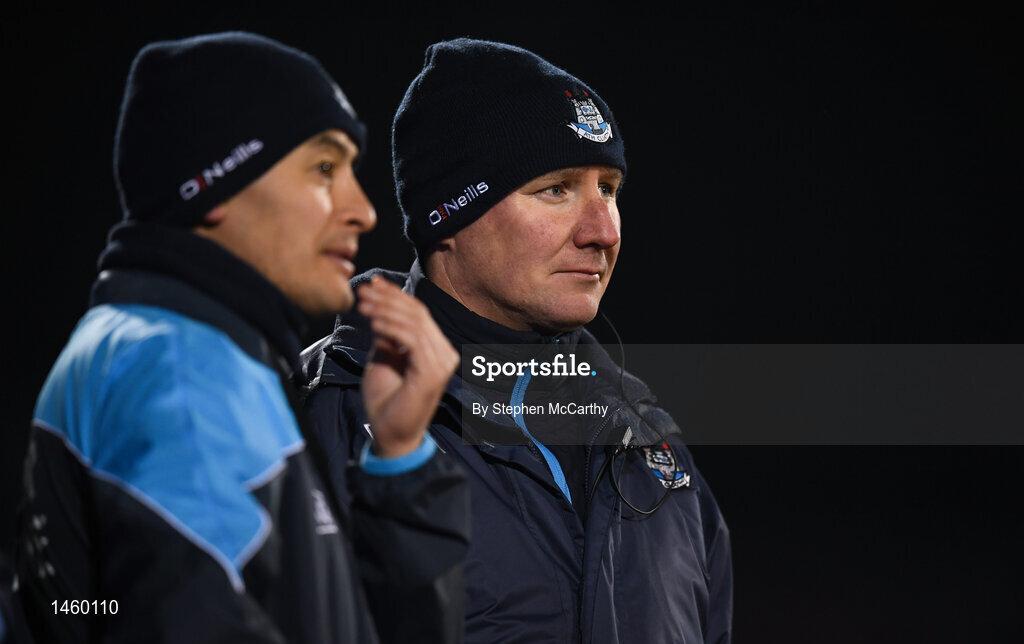 24 February 2018; Dublin manager Jim Gavin and selector Jason Sherlock during the Allianz Football League Division 1 Round 4 match between Mayo and Dublin at Elverys MacHale Park in Castlebar, Co Mayo. Photo by Stephen McCarthy/Sportsfile
