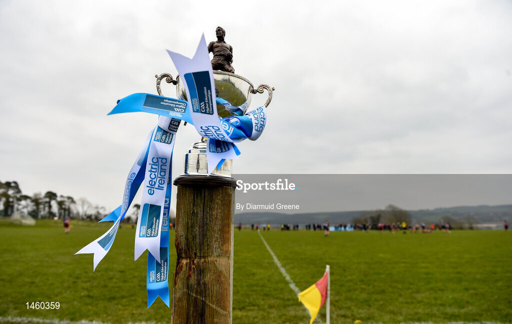 24 February 2018; A general view of the Fergal Maher cup and Man of the Match award during the Electric Ireland Fergal Maher Cup Final between St Mary's University College and NUIG Letterfrack in Mallow, Cork. The unique quality of the Electric Ireland Higher Education Championships sees players putting their intercounty and club rivalries aside to strive to achieve Electric Ireland Fergal Maher Cup glory. Electric Ireland has been shining a light on these First Class Rivals as proud sponsor of the college level competitions for the next four years. #FirstClassRivals. Photo by Diarmuid Greene/Sportsfile