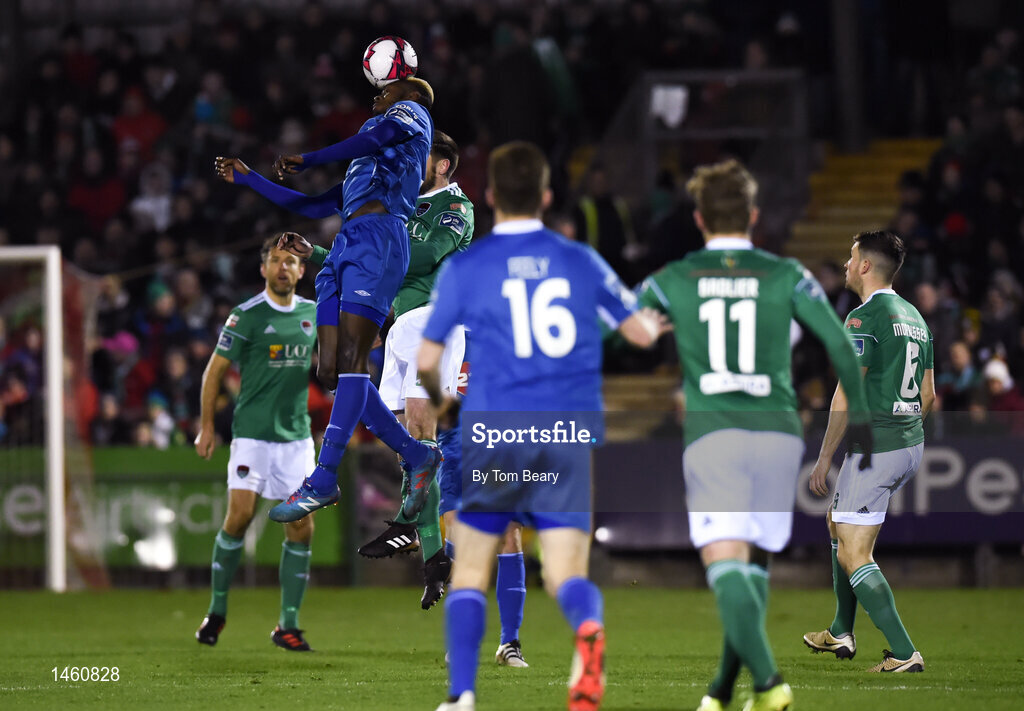 23 February 2018; Ismahil Akinade of Waterford in action against Aaron Barry of Cork City during the SSE Airtricity League Premier Division match between Cork City and Waterford at Turner's Cross in Cork. Photo by Tom Beary/Sportsfile