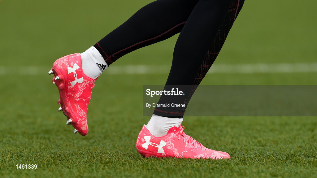 26 February 2018; A general view of Alex Wootton's boots during Munster Rugby squad training at the University of Limerick in Limerick. Photo by Diarmuid Greene/Sportsfile