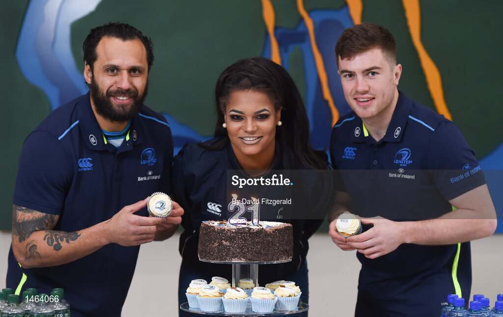 9 March 2018; Leinster players, from left, Isa Nacewa, Eimear Corri and Luke McGrath at the launch in Leinster Rugby HQ, UCD, Belfield, Dublin. Celebrating 21 Years of Excellence at the Bank of Ireland School of Excellence Launch for 2018, for further details check out: leinsterrugby.ie/soe. Photo by David Fitzgerald/Sportsfile