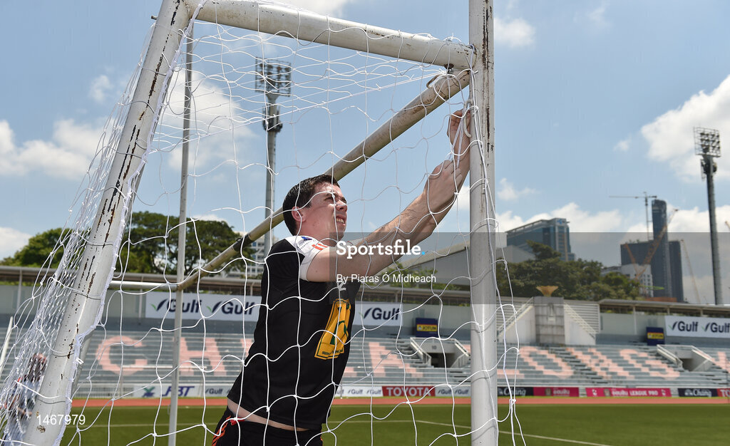 17 March 2018; James Donnelly, originally from St. Brigid's GAA, Co Roscommon, puts up the goalnets before the 2016 All-Stars v 2017 All-Stars Exhibition match during the TG4 Ladies Football All-Star Tour 2018. Chulalongkorn University Football Club Stadium, Bangkok, Thailand. Photo by Piaras Ó Mídheach/Sportsfile