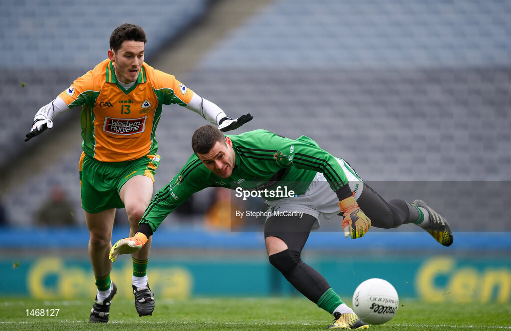 17 March 2018: Micheál Aodh Martin of Nemo Rangers in action against Ian Burke of Corofin during the AIB GAA Football All-Ireland Senior Club Championship Final match between Corofin and Nemo Rangers at Croke Park in Dublin. Photo by Stephen McCarthy/Sportsfile